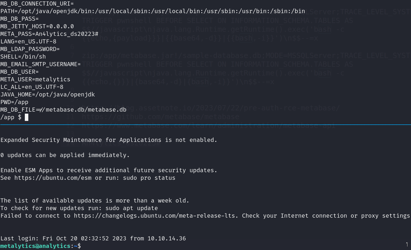 - Credentials: metalytics:An4lytics_ds20223#