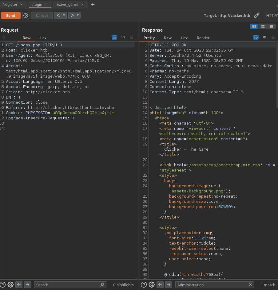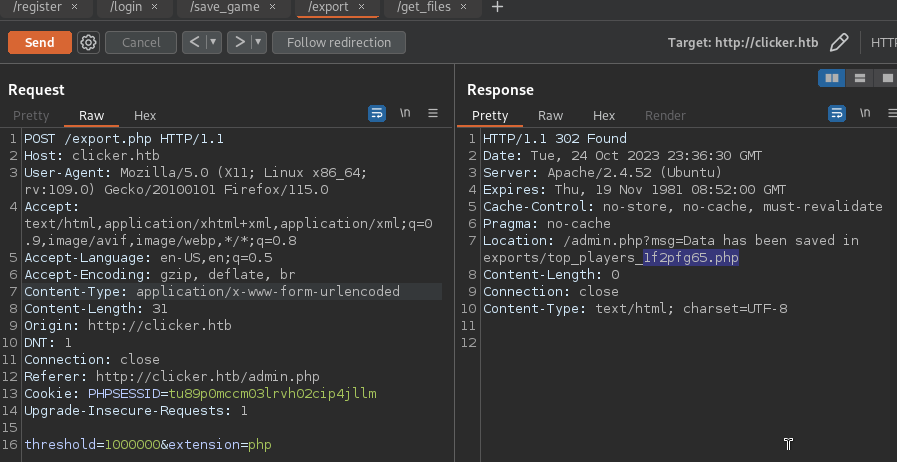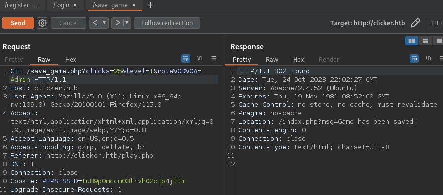 - Follow redirect: http://clicker.htb/