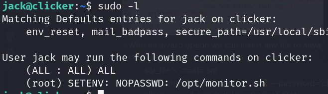 - /usr/bin/mysql -u clicker_db_user –password=’clicker_db_password’ clicker -v < /home/jack/queries/”sql_file”
