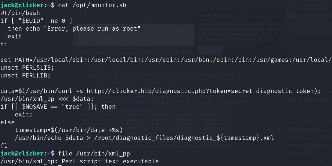 - SUID binary (monitor.sh)