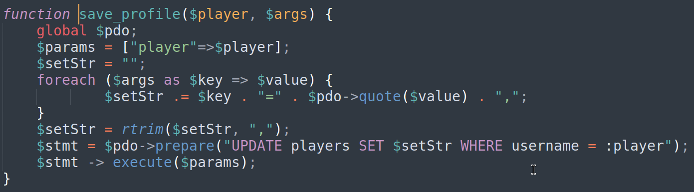 - Code injection on “nickname” variable (save_game.php)