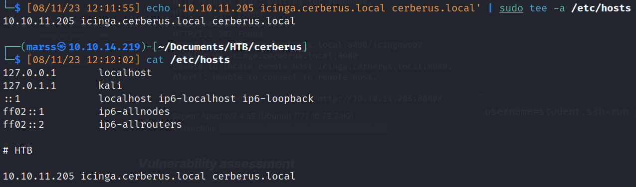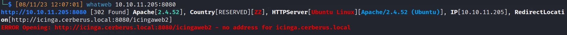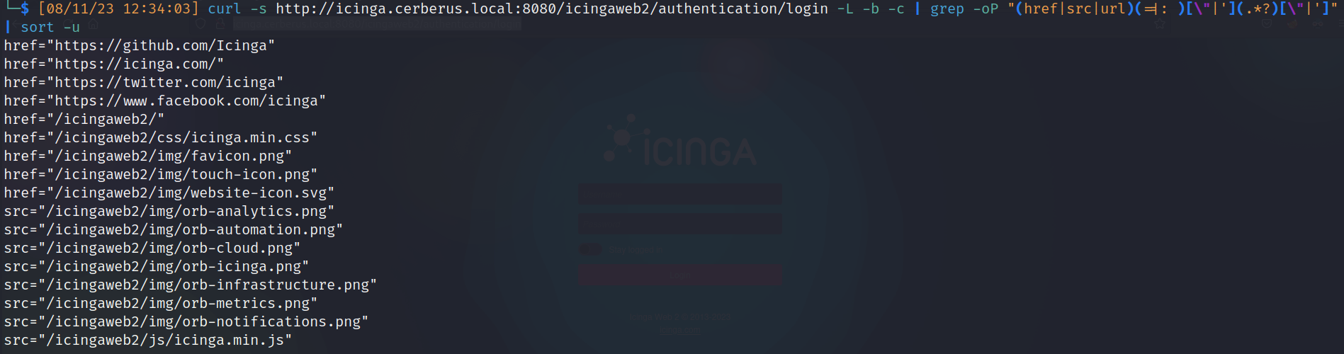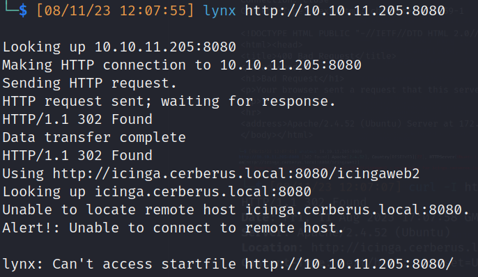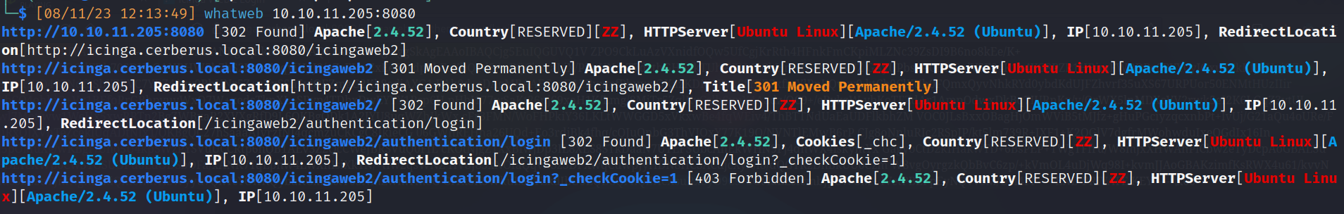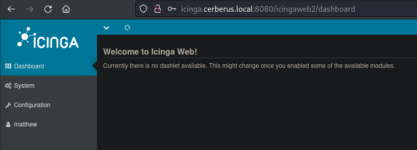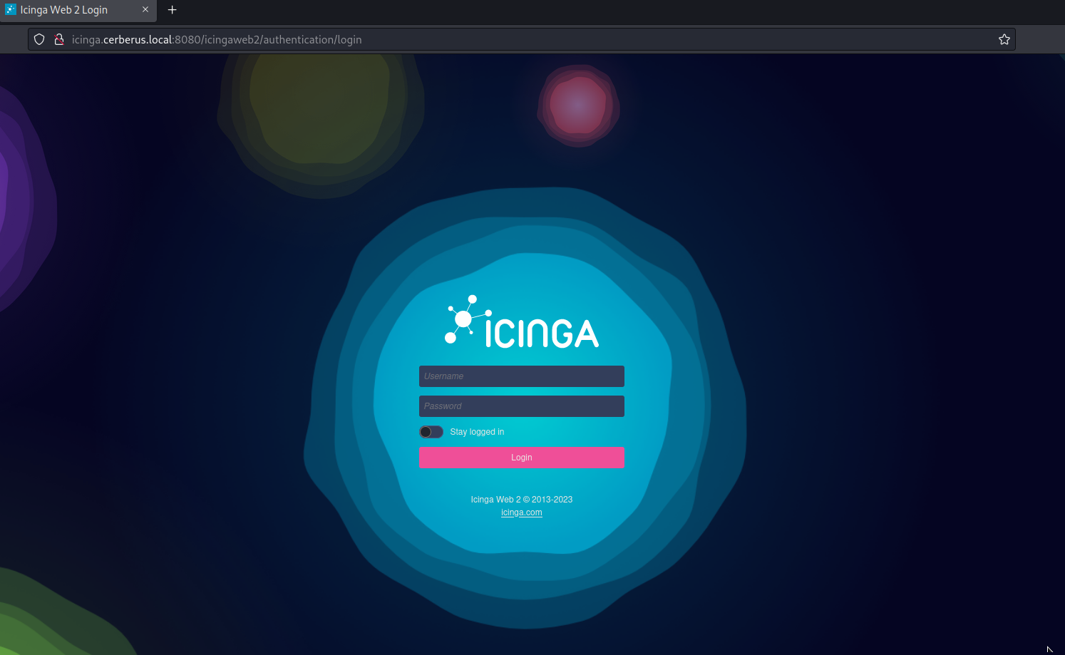 - Redirection: http://icinga.cerberus.local:8080/icingaweb2
