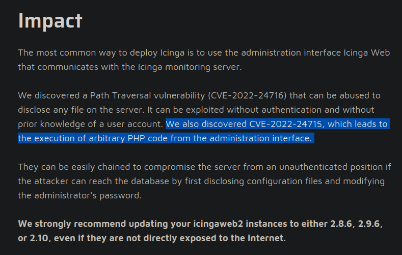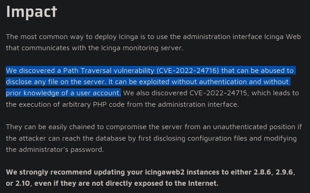 - PoC: https://www.sonarsource.com/blog/path-traversal-vulnerabilities-in-icinga-web/