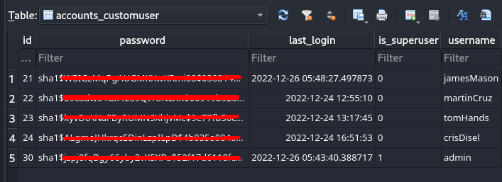 - csrfmiddlewaretoken: Cross Site Request Forgery protection