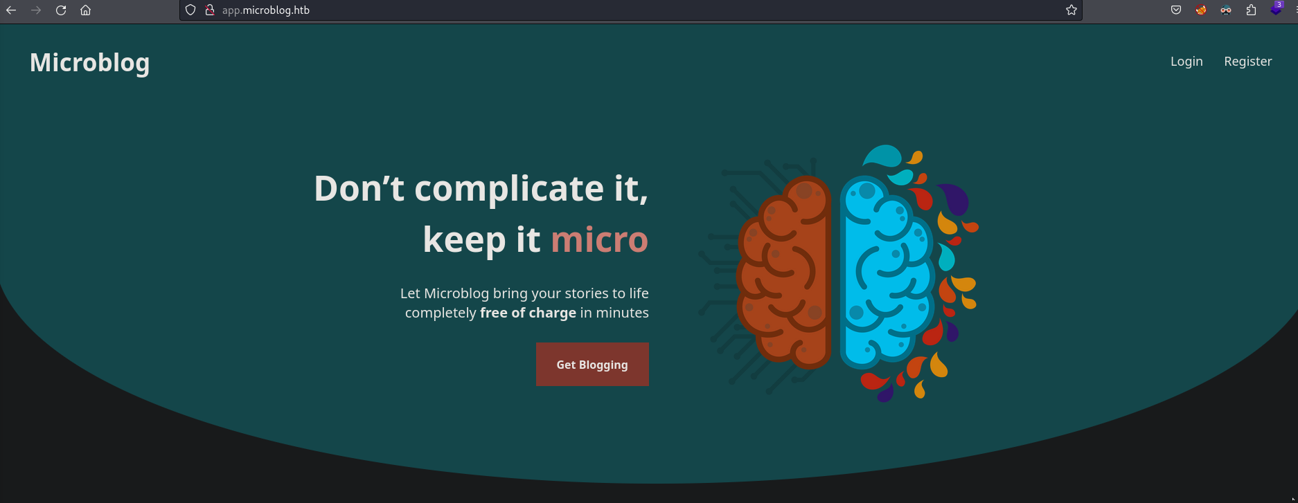 - http://app.microblog.htb (app to create blog with any subdomain)