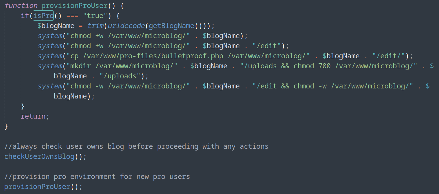 - We can change permission to be a pro user and upload a “image” with php code (rabbit hole)