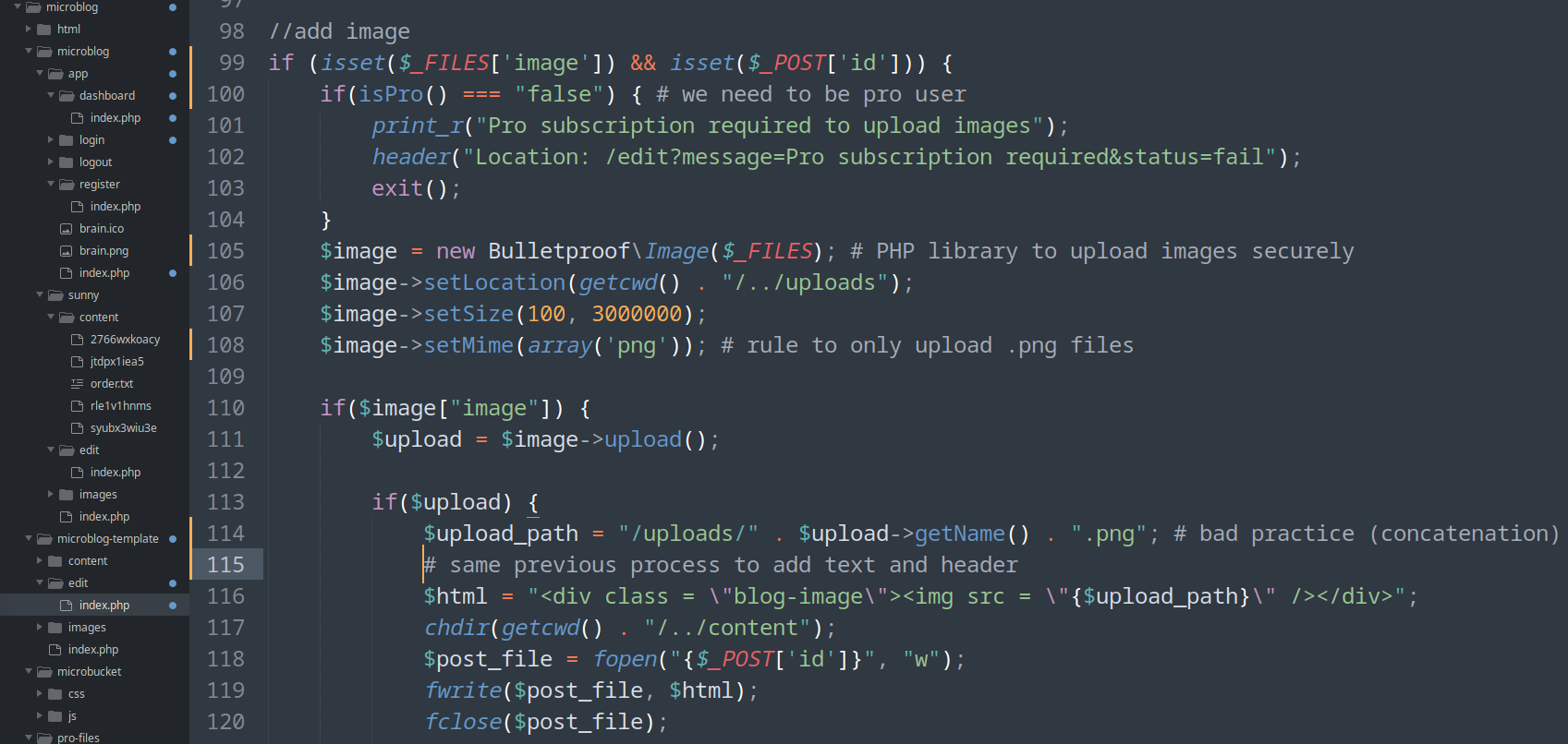 - We can change permission to be a pro user and upload a “image” with php code (rabbit hole)