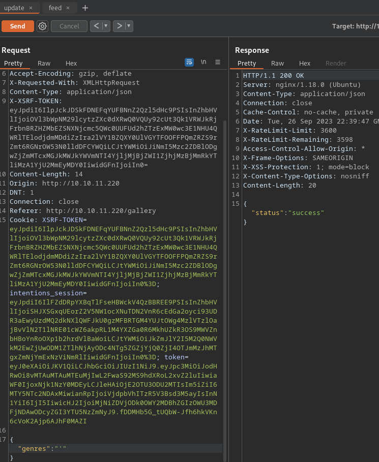 - genres = “ ‘ “ -> 500 Internal server error (MySQL?)