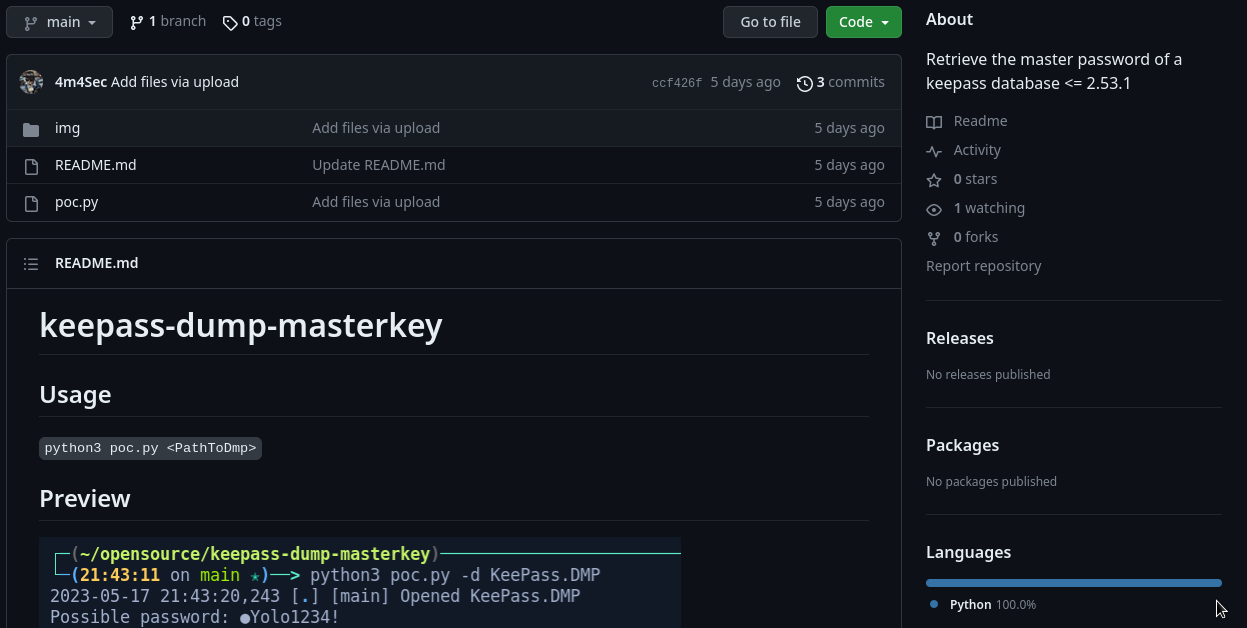 - Windows env: https://github.com/vdohney/keepass-password-dumper