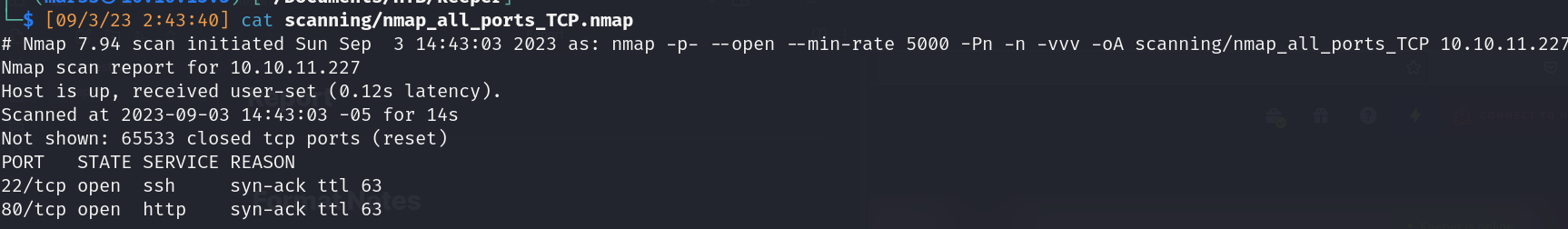 TCP Nmap scan: 65,535 ports