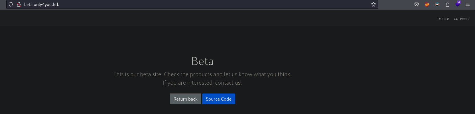 - On web content they say: “We also have some products in beta version to show!” and below a link to products available to check http://beta.only4you.htb/