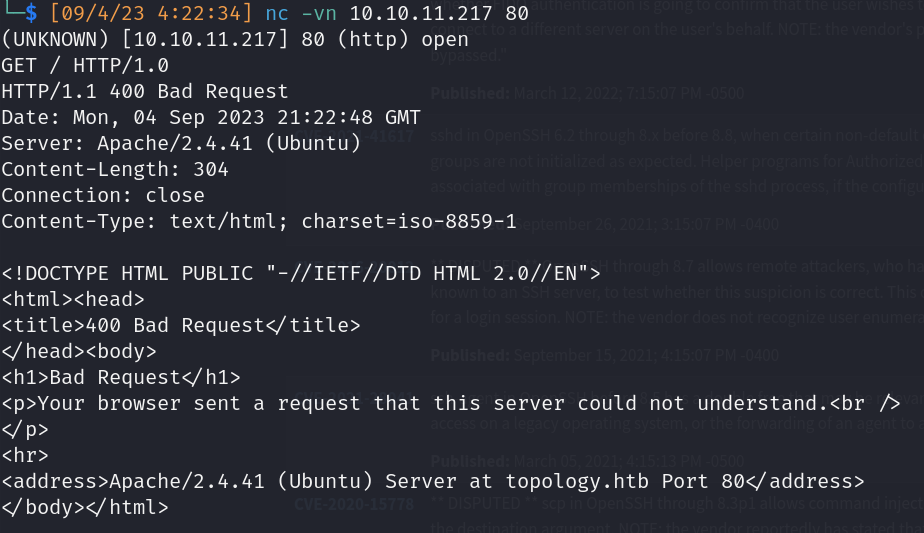 - HttpServer: Apache/2.4.41 (Ubuntu/Linux)
