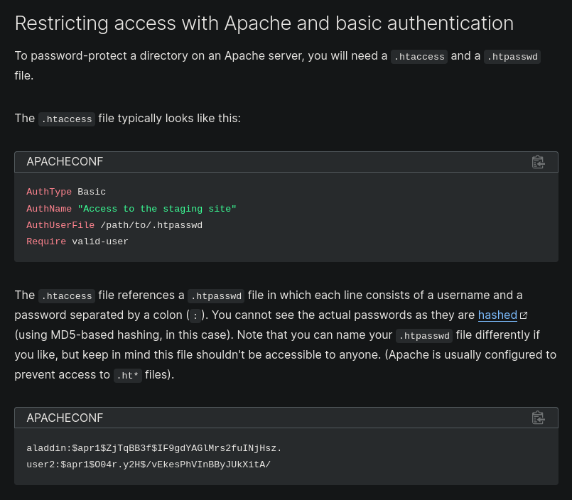 - Read .htpasswd (file to password-protect a directory on an Apache server)